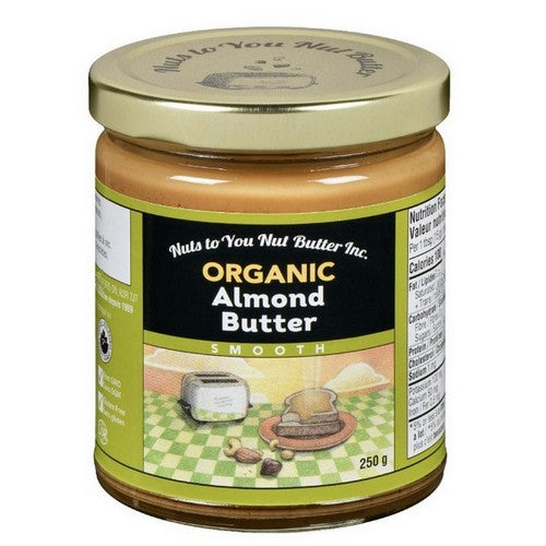 Organic almond butter smooth is glass jars with BPA metal lids. Organic by centre for systems integration. Non gmo and dairy, wheat, soy and gluten free. Kosher no added salt, sugar or hydrogenated oil.