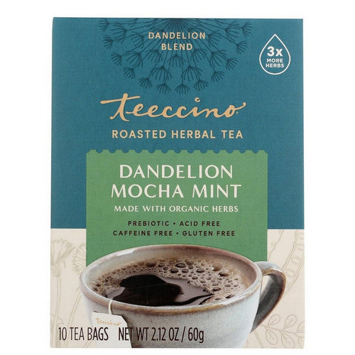 Teeccino, Dandelion Mocha Mint Chicory Tea, 10 Bags (Pack Of 6)