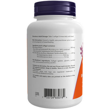| Medicinal Ingredients: Plant Sterol Esters 500mg (from 500mg CardioAid®) (Providing min. 80% combined beta-sitosterol, stigmasterol and campesterol) Fish Oil (Whole Anchovy, Mackerel, Sardine Body Oil) 60 mg Eicosapentaenoic Acid 10.8 mg Docosahexaenoic Acid 7.2 mg | ||