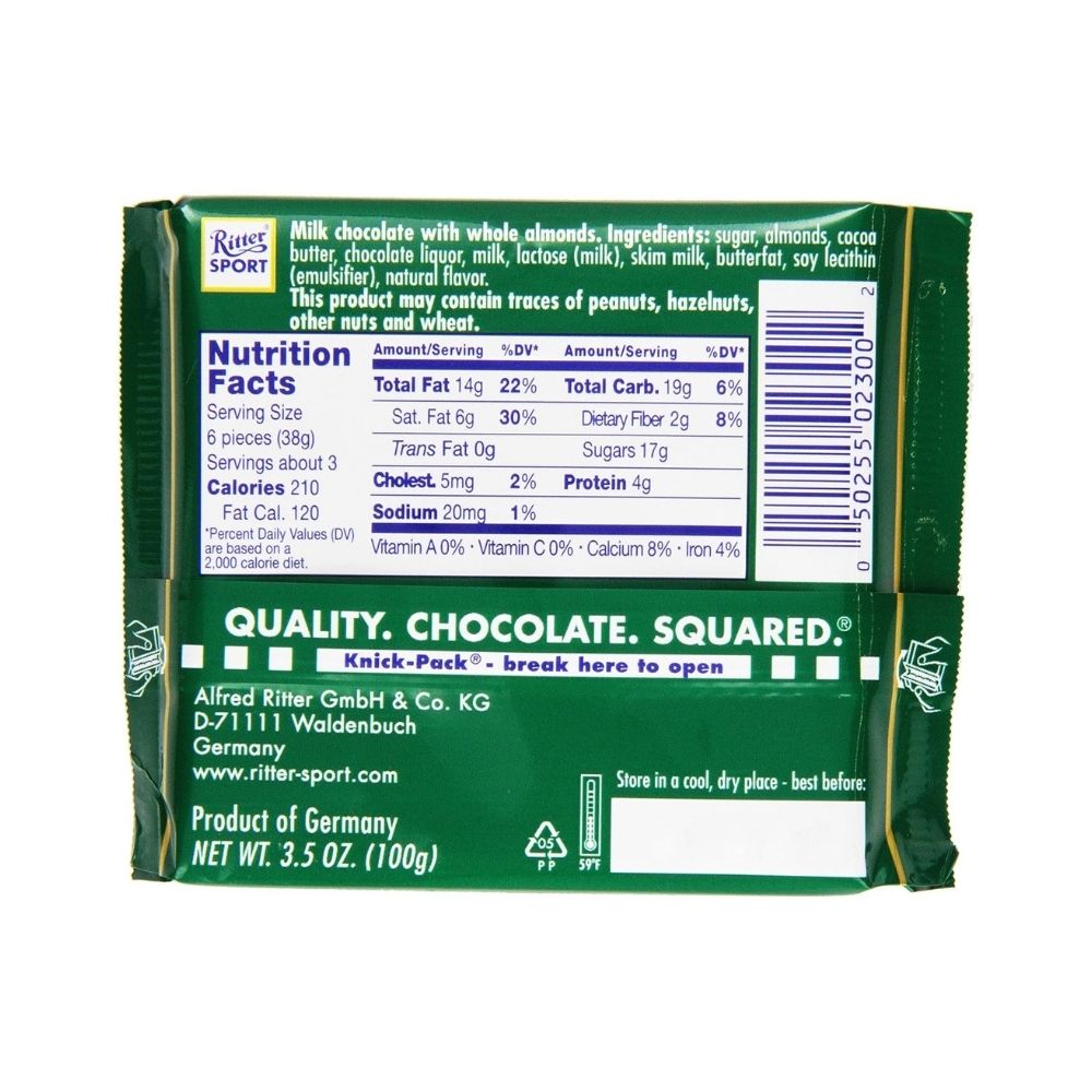 Milk Chocolate With Whole Almonds 100 Grams (Case Of 11) by Ritter Sport