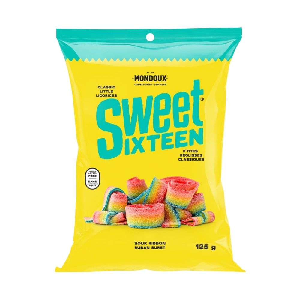 Sweet sixteen sour licorice ribbons offer a tantalizing twist on traditional licorice with a fun sour flavor. These soft, chewy ribbons combine the classic taste of licorice with a zesty sour coating, delivering a unique and enjoyable candy experience.
