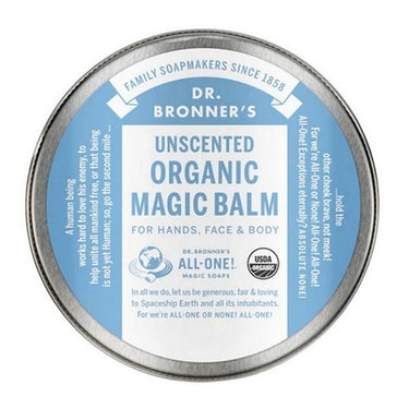 Dr. Bronner's Organic Magic Balm Unscented is a versatile, all-natural balm made with organic ingredients that soothe and moisturize the skin. Ideal for dry areas, it's perfect for chapped lips, cracked hands, and rough elbows. This balm is free from synthetic fragrances, preservatives, and artificial additives, making it gentle on sensitive skin. It's also certified organic and fair trade, promoting ethical sourcing and sustainability.