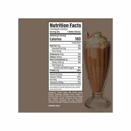 Enjoy a delicious chocolate protein shake that provides great taste and quality protein in every sip. This drink is perfect for anyone looking to add a protein boost to their diet without any hassle. It's ready to drink and makes a great snack or meal replacement.