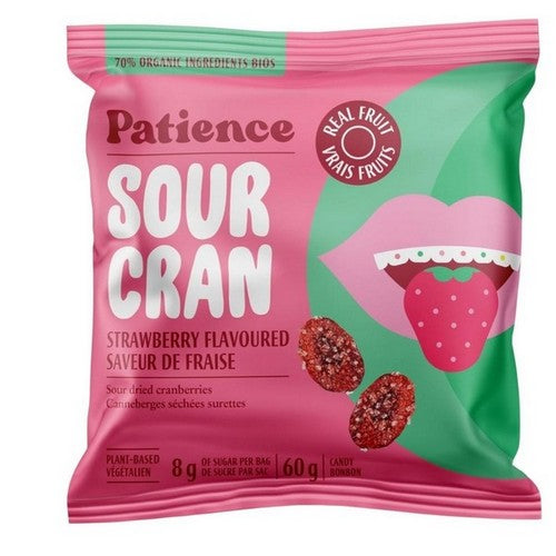 Sour Cran With Dried Cranberries Sour Strawberry Flavoured 60 Grams (Case Of 12) by Patience Fruit & Co