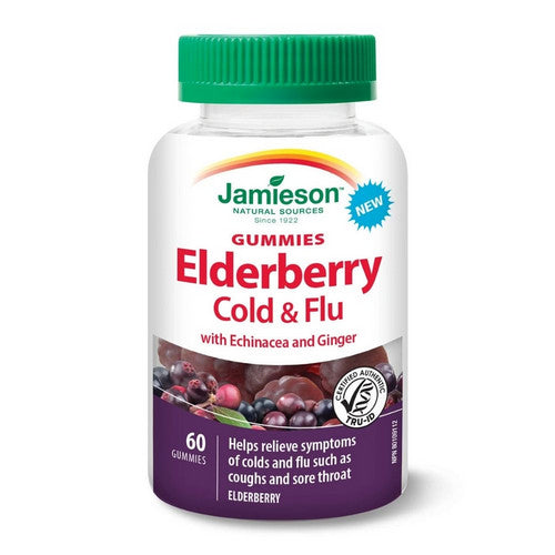 Jamieson Vitamins, Elderberry Cold & Flu Gummies With Echinacea & Ginger Elderberry, 60 Gummies