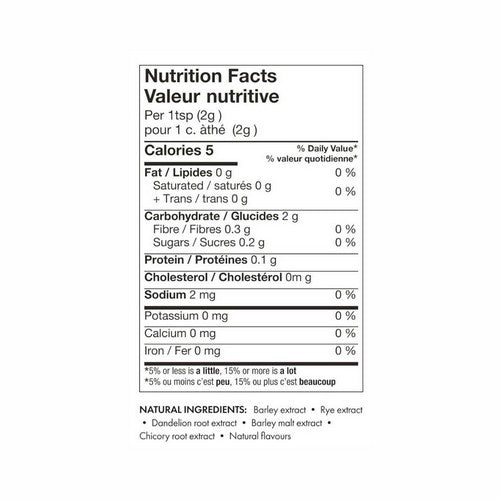 Other Ingredients: Roasted extracts:(barley, rye, dandelion root, chicory root, barley malt), natural flavour. |