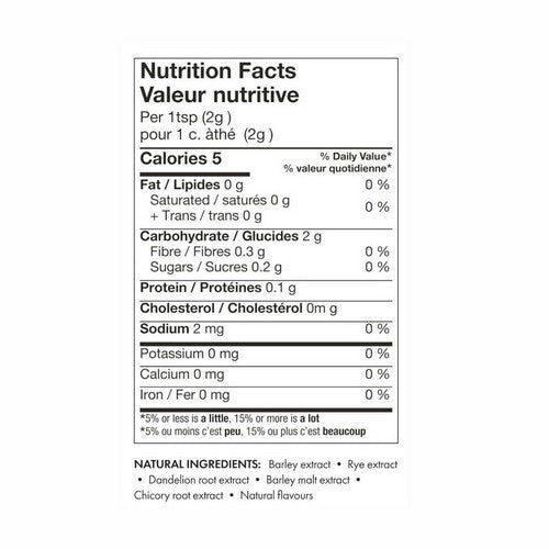 Ingredients: Barley extract, Rye extract, Dandelion root extract, Chicory root extract, Barley malt, Natural flavours. |