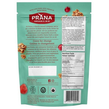 Enjoy a deliciously crunchy start to your day with Prana's Organic Granola Cereal Mixed Berry Crunch. Made from wholesome ingredients, this granola is packed with the goodness of mixed berries that provide a burst of flavor and nutrition. Perfect as a breakfast option or a healthy snack, this granola is crafted without artificial additives and is non-GMO, ensuring a guilt-free indulgence. Whether mixed with yogurt, served with milk, or enjoyed straight from the bag, this granola delivers a satisfying crunch and the natural sweetness of berries with every bite.