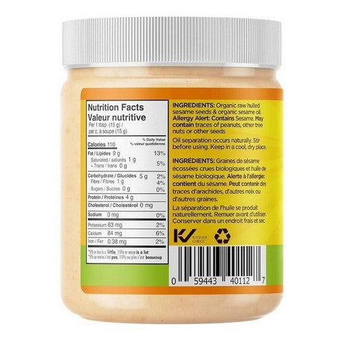 Organic Sesame Tahini Raw 500 Grams (Case Of 12) by New World Organics