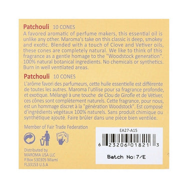 Maroma, Patchouli Cone Incense, 0.04 Killogram (10 Units)