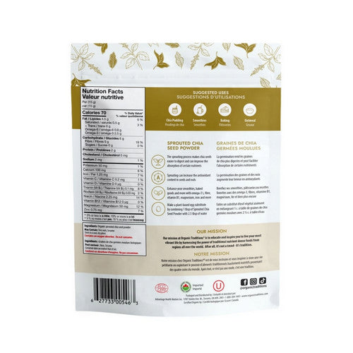 Organic Traditions, Sprouted Chia Seed Powder, 454 Grams