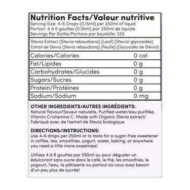 Ingredients: Flavor, Purified water, Vitamin?C, Organic Stevia Extract. |