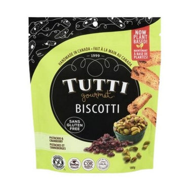 Tutti gourmet gluten free pistachio, cranberry & anise biscotti combines the rich flavors of pistachios, sweet cranberries, and aromatic anise to create a uniquely delicious treat. These crunchy biscotti are expertly baked to achieve a perfect texture, making them an ideal accompaniment to your favorite beverage or a satisfying snack on their own.