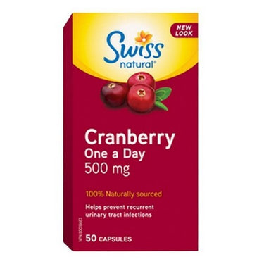 That s right, we did it. We managed to get all the benefits of a giant glass of cranberry juice concentrate down into one little capsule*. Cranberries have been shown to help prevent recurrent urinary infections. We make it easy with our 100% naturally sourced Cranberry One A Day. Plus, it has no artificial flavours, colours, preservatives, sweeteners, dairy, gluten, wheat, or yeast. Swiss Natural is one of the Canadian leaders in Cranberry products. *Each capsule is equivalent to about 8-10 oz of cranberry juice concentrate.