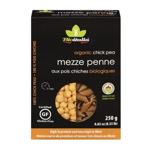 Bioitalia's Organic Mezze Penne Chickpea is a wholesome pasta made from organic chickpeas, providing a rich source of protein and fiber. This pasta is not only gluten-free but also has a firm texture that holds sauces beautifully, making it a perfect base for your favorite dishes. It's an excellent choice for those seeking a nutritious alternative to traditional pasta, bringing a unique flavor and health benefits to every meal.