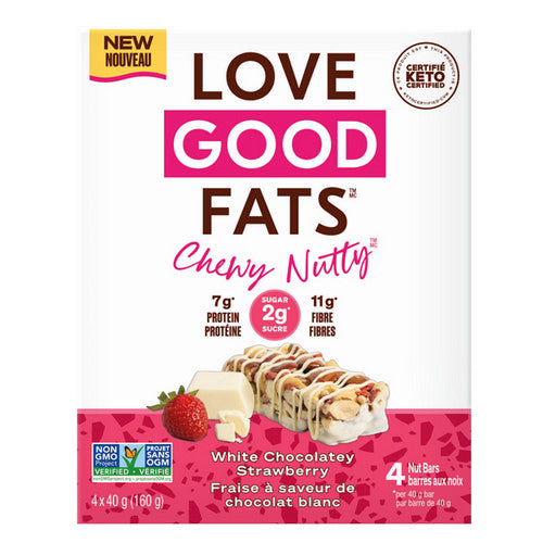 New love good fats chewy nutty fruit bars embrace a whole new way of eating! They re ridiculously delicious and have only 2G of sugar and are loaded with good fats. Finally, a crunchy, delicious bar with real nuts & fruits that are loaded with all the sugar and are made with tons of good stuff. This white chocolatey strawberry bar is the first to bring such a deliciously sweet flavour to the table without all the sugar.