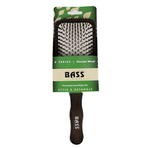 3 Series style and detangle hair brush nylon pin solid beech wood handle large paddle espresso finish.
