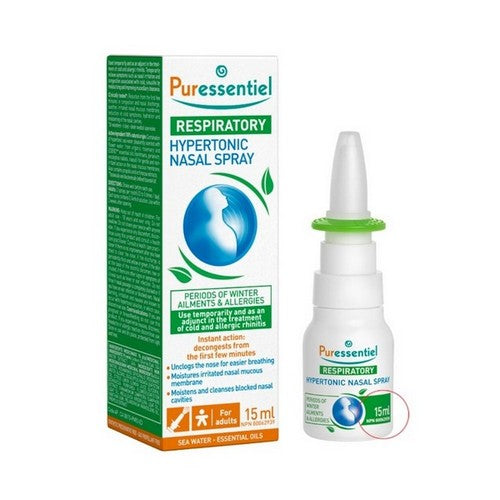 Puressentiel Respiratory Hypertonic Nasal Spray is designed to help clear nasal passages and support respiratory health. Formulated with natural ingredients, this nasal spray hydrates and soothes nasal membranes, making it ideal for individuals suffering from congestion and dryness. Perfect for use during allergy seasons or when experiencing colds, this spray provides relief from blocked sinuses and enhances breathing comfort. It is suitable for the whole family and is free from preservatives, making it gentle for everyday use.