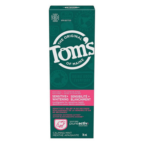 Tom's Of Maine, Pureactive Sensitive Plus Whitening Fluoride Free Toothpaste, 76 Ml
