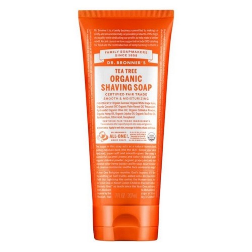 Dr. Bronner's Organic Shaving Soap with Tea Tree is a premium, organic solution designed for a clean and smooth shave. Made with natural ingredients, it provides a rich, creamy lather that helps protect the skin while shaving. The soothing properties of tea tree oil promote healing and reduce irritation, making it ideal for sensitive skin. This shaving soap is biodegradable and cruelty-free, upholding Dr. Bronner's commitment to social and environmental responsibility.
