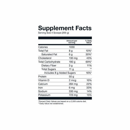 | Other Ingredients: Carbohydrate Blend (Maltodextrin, Sweet Potato Starch, Quinoa Powder, Oat Fiber Powder). Protein Blend (Whey Protein Concentrate, Whey Protein Hydrolysate, Whey Protein Isolate, Milk Protein Concentrate, Micellar Casein), Coconut Oil Powder (Coconut Oil, Corn Syrup Solids, Sodium Caseinate,, Mono- and Diglycerides, Sodium Silicoaluminate), Cocoa Powder, Natural and Artificial Flavors, MCT Powder (Medium Chain Triglycerides, Nonfat Dry Milk, Disodium Phosphate, Silicon Dioxide), Soy Lecithin, Flaxseed Oil Powder, Gum Blend (Cellulose, Xanthan, Carrageenan), Sucralose, Acesulfame Potassium. | ||