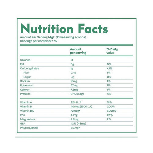 100% Pure Spirulina. High In Protein And Essential Nutrients. Supports Immune Health. Rich In Antioxidants. Promotes Natural Energy. Ideal For Smoothies And Recipes.