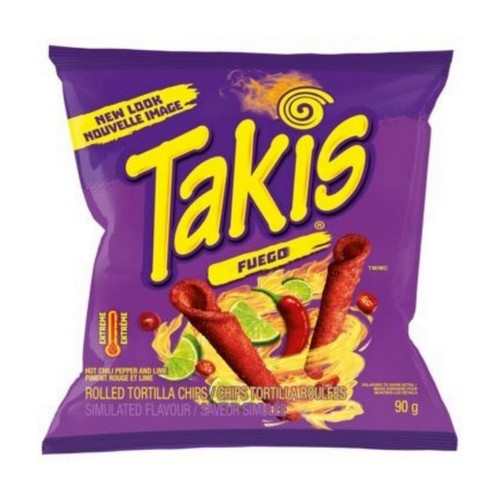 Fuego rolled tortilla corn chips by takis deliver an explosive combination of intense flavor and crunch. These uniquely shaped rolled chips are seasoned with a fiery blend of spices, providing a spicy kick that is sure to satisfy bold snack lovers. Each bite offers a satisfying crunch and a tantalizing heat, making them an exciting addition to any snack lineup.