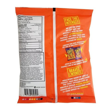 Intense nacho non spicy rolled tortilla chips by takis offer a flavorful snacking option without the heat. These uniquely rolled tortilla chips are infused with a rich nacho cheese flavor, providing a cheesy, savory taste that is both satisfying and delicious. Perfect for those who prefer milder snacks, these chips deliver a crunchy texture that makes them ideal for dipping or enjoying on their own.