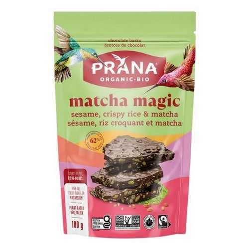 Organic Matcha Magic 62% Cocoa Dark Chocolate Bark 100 Grams X 8 by Prana