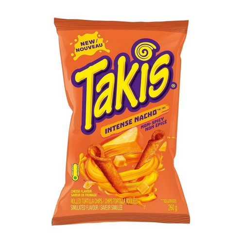 Rolled tortilla chips non spicy intense by takis offer a deliciously cheesy snack experience without the heat. These uniquely rolled tortilla chips are infused with an intense nacho cheese flavor that delivers a savory, satisfying crunch. Perfect for those who prefer milder snacks, these chips are ideal for dipping or enjoying on their own, making them a versatile addition to any snack lineup.