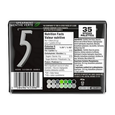 Gum spearmint-rain flavoured sugar free chewing gum. With its spearmint rain flavor, this gum provides a burst of freshness that will invigorate your senses. Each pack contains 35 sticks, ensuring you have plenty to share or enjoy on your own. 5 Gum is known for its long-lasting flavor, and this spearmint-rain variety is no exception. The sugar free formula allows you to enjoy the gum without worrying about added sugars. It is perfect for those who are watching their sugar intake or following a low-sugar diet.