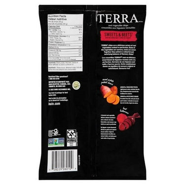 Terra Chips Sweets And Beets Chips are a delicious and unique snack made from real vegetables. With a delightful blend of sweet and earthy flavors, these chips are made from high-quality ingredients and are perfect for on-the-go snacking or as a crunchy side to meals. Enjoy the vibrant taste and satisfying crunch of various root vegetables in every bite.