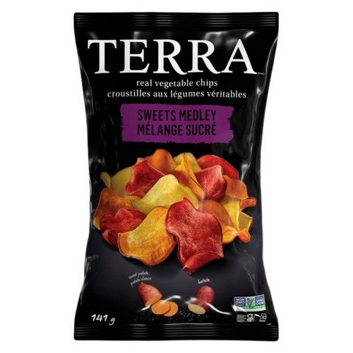 Sweets Medley Chips by Terra Chips are a delightful assortment of naturally sweet vegetables crafted into crispy chips. These colorful chips are made from a blend of beets, sweet potatoes, and carrots, delivering a satisfying crunch and a rich, sweet flavor. Perfect for snacking on their own or paired with dips, these chips offer a vibrant and nutritious alternative to traditional potato chips. Whether you're enjoying them at a party, for lunch, or as an on-the-go snack, Sweets Medley Chips bring a touch of creative snacking to your day.