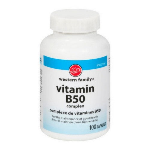 Vitamin B50 Complex by Western Family provides a blend of essential B vitamins. These vitamins play a key role in supporting energy production and overall well-being. It's an easy way to add vital nutrients to your diet.