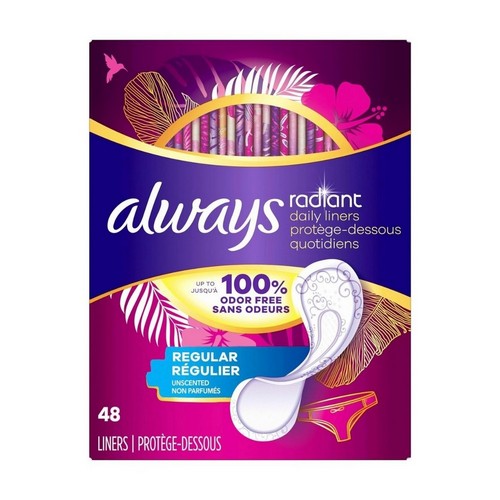 Always, Radiant Pantiliners Regular Unscented, 48 Count