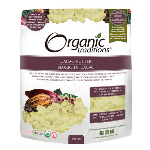 Directions: Add Cacao Butter for smoothies, hot chocolate and maca drinks, raw superfood desserts and chocolate treats. Make your own artisanal chocolate bars with other Organic Traditions Superfoods such as Goji berries and Vanilla. With its incredible emollient properties, use the butter as a beauty treatment. Rub a small piece of butter in the palm of your hand and apply to the skin or slowly melt the better in a sauce pan. Add essential oils of your choice. Cacao butter is the most incredible moisturizer, lip balm, cuticle cream, stretch mark and cellulite eraser, hair and scalp treatment, sensual edible massage oil and aromatic bath oil.