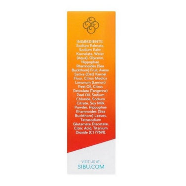 Ingredients: Coconut oil, palm oil, safflower oil, glycerin, purified water,oatmeal, sodium hydroxide, sea buckthorn puree, sorbitol,sorbitan oleate, fragrance orange/lemon, soybean protein,sea buckthorn leaves, titanium dioxide. |