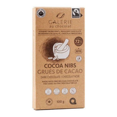 Galerie, Fairtrade Dark Chocolate Cocoa Nibs Bar, 100 Grams (8 Count)