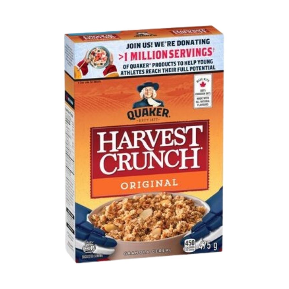 Honey almonds and granola clusters cereal harvest crunch add a touch of sweetness to your mornings with delicious almonds and crunchy granola clusters wrapped in the sweet blend of honey and brown sugar. Not only does quaker harvest crunch granola cereal pairs perfectly with milk, it is also an amazing addition to all kinds of easy breakfast recipes. Try mixing it with yogurt, fresh fruit, in a smoothie bowl, or as a satisfying anytime snack in between meals. Start the day with delicious granola clusters of quaker harvest crunch original granola cereal made with whole grain rolled oats and other grains.
