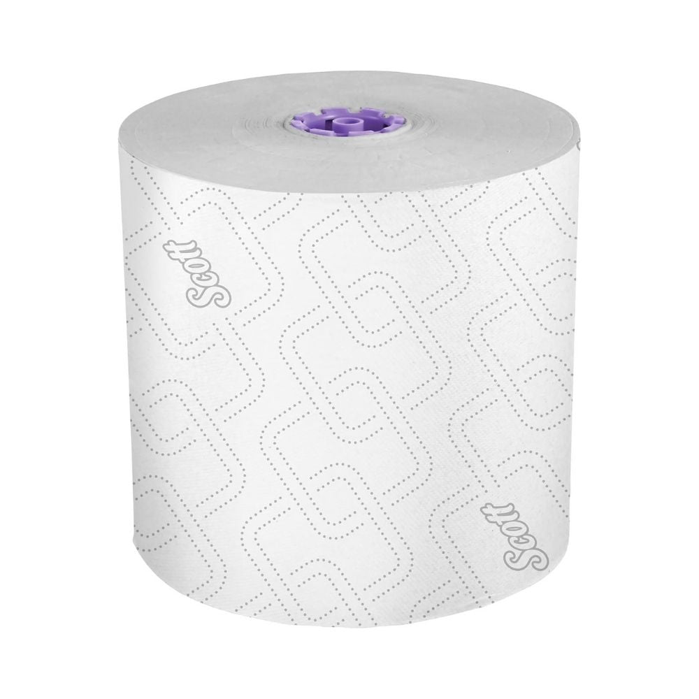 Kimberly clark scott essential white high capacity hard roll towel is a durable and highly absorbent paper towel designed for high traffic commercial environments. Its high capacity roll ensures fewer refills, reducing maintenance time and making it ideal for restrooms, kitchens, and work areas where efficiency and cleanliness are crucial.