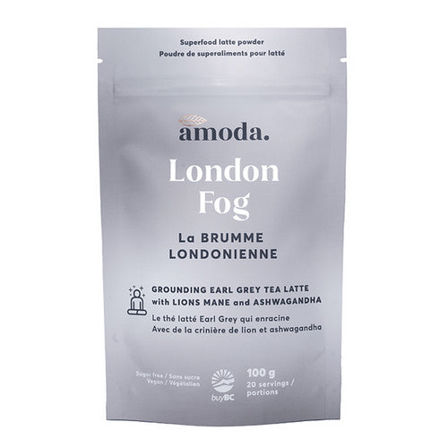 London fog is a creamy vanilla earlgrey tea latte with adaptogens that help find a sense of presence, feel grounded and be focused anytime. A comforting blend made with premium indian black tea, ashwagandha and lion s mane.