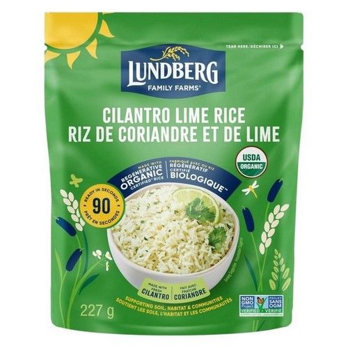 Lundberg's Organic Cilantro Lime Rice is a flavorful blend of organic long grain rice, enhanced with zesty cilantro and tangy lime for a delicious side dish or base for your favorite meals. This rice provides a unique taste that pairs well with a variety of cuisines, making it an excellent addition to your pantry. The rice is produced using sustainable farming practices, ensuring high quality and taste while being environmentally friendly.
