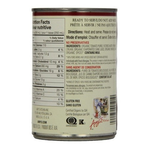 Delight in the rich flavors of Amys Organic Cream Of Tomato, made with organic tomatoes and a blend of delicious spices. This creamy soup offers a comforting taste experience that is both satisfying and wholesome. Perfect for a quick meal or paired with your favorite sandwich, this soup is a delicious option for those seeking a natural and organic product.
