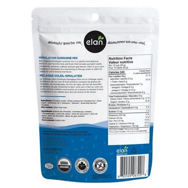The Organic Himalayan Sunshine Mix by Elan offers a delightful medley of organic nuts, seeds, and dried fruits. It is carefully crafted to provide a perfect balance of taste and nutrition, ideal for snacking or adding to your culinary creations. This wholesome blend is a great source of fiber, protein, and healthy fats, making it a fantastic choice for those seeking a nutritious and flavorful snack.