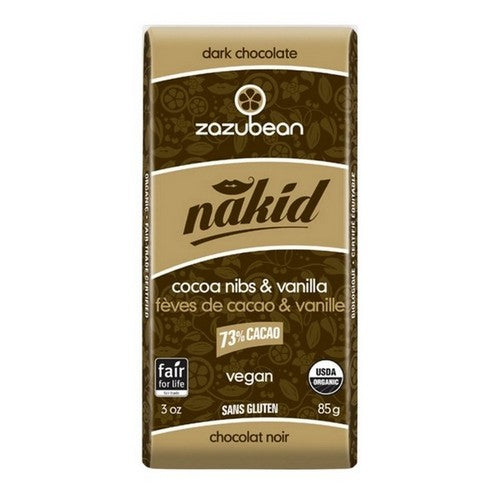 Savor the rich, intense flavor of Organic Nakid Dark Chocolate made with 73% cacao, combining the crunch of cocoa nibs and the smooth essence of vanilla. This delectable treat is crafted from 100% organic ingredients, ensuring a high-quality experience with every bite. Perfect for chocolate lovers seeking a less sweet and more robust flavor profile, this chocolate is ideal for snacking or using in baked goods and desserts.