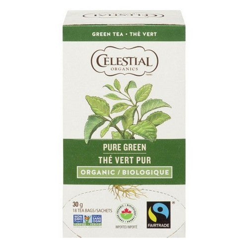 Celestial Seasonings, Organic Pure Green Tea, 18 Bags (Case Of 6)