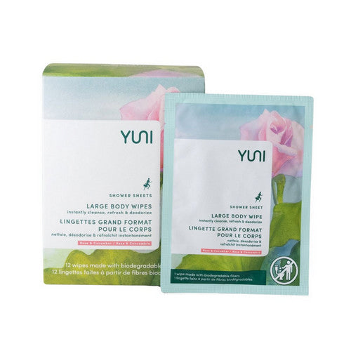 Yuni Beauty, Shower Sheet Large Body Wipes Rose And Cucumber, 12 Count