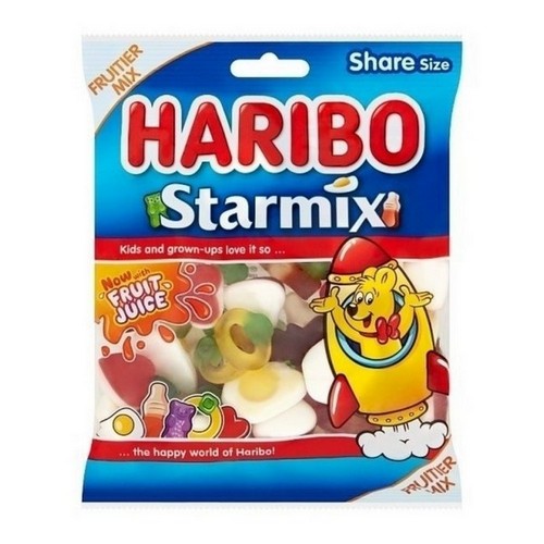 Starmix gummy candies are a delightful mix of classic gummy treats that bring a burst of fruity flavors and fun shapes in every bite. This includes an assortment of haribo’s best loved gummies, featuring iconic shapes like bears, rings, hearts, and cola bottles, each offering a unique and irresistible flavor.