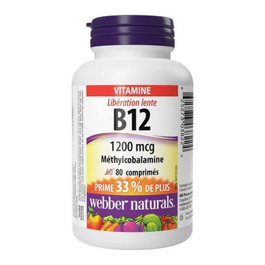 Vitamin B12 Methylcobalamine Timed Release 80 Tabs by Webber Naturals